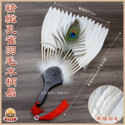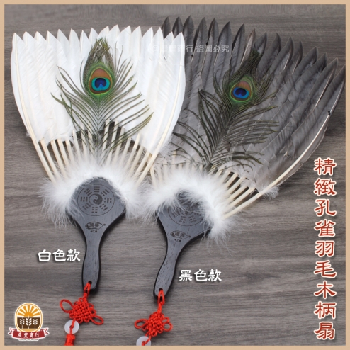 精緻孔雀羽毛木柄扇