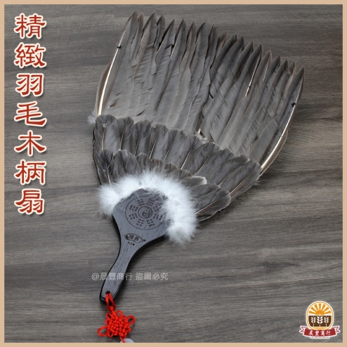 精緻羽毛木柄扇