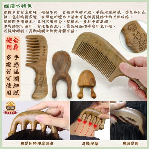 ➤綠檀木按摩梳