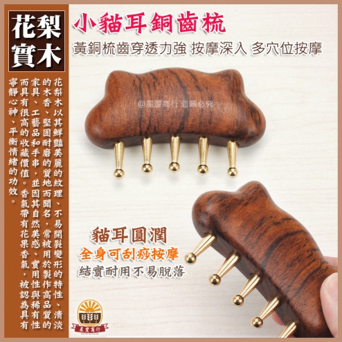 花梨木小貓咪五齒黃銅梳