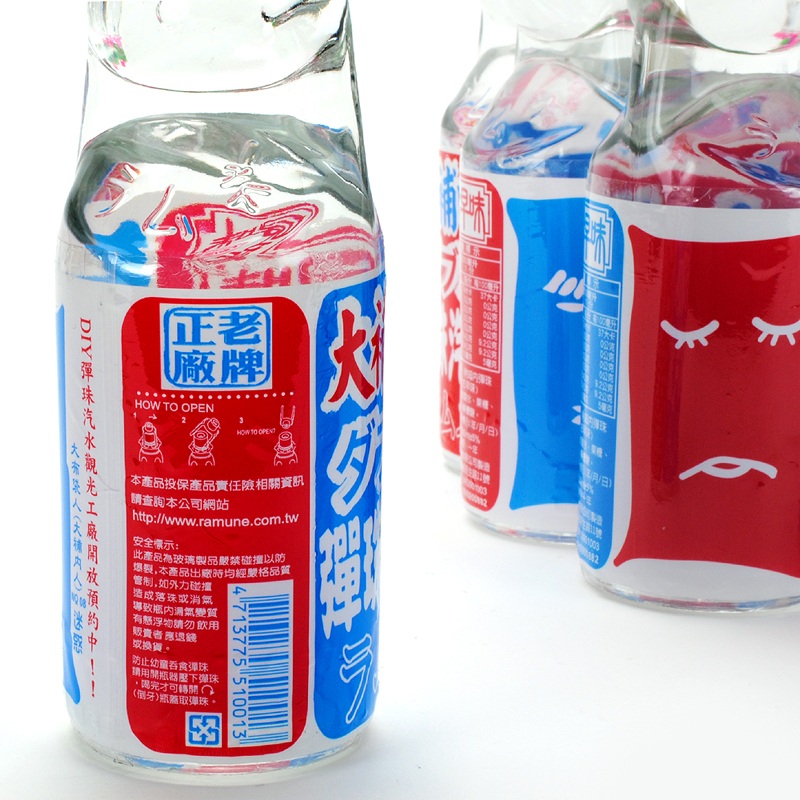 ★彈珠汽水是在台灣極受歡迎的碳酸清涼飲料,英文名稱為「Ramune」、日文名稱「ラムネ」來自英文的 「lemonade」(レモネード,檸檬水),其特殊的包裝方式是用一顆玻璃珠封口,瓶頸兩側凹入,要喝時將彈珠壓入,使之掉落在瓶頸處即可飲用。
