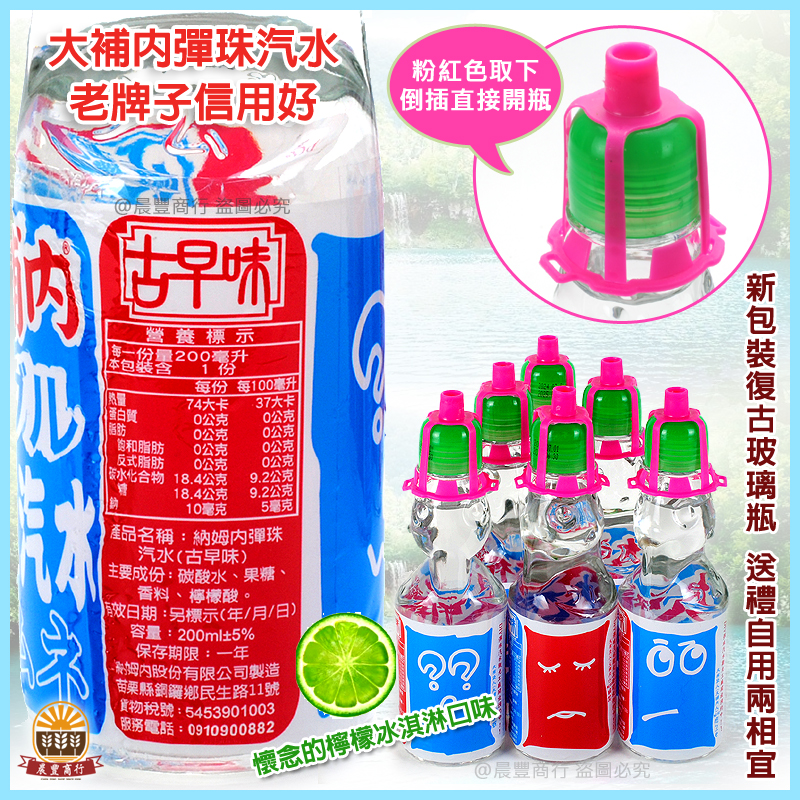 ★商品名稱: 新款新包裝(三太子)大補內彈珠汽水200cc玻璃瓶(大布袋人系列)箱購30瓶/玻璃瓶(限宅配)