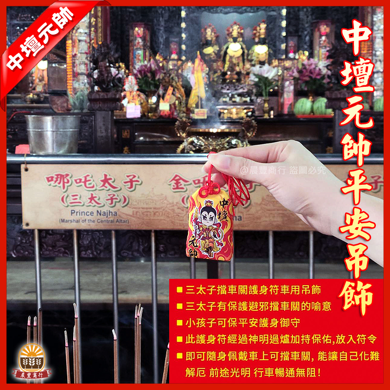 『中壇元帥祈福保平安福袋』+防水套 可放平安符-三太子檔車關平安符袋【平安福袋】
