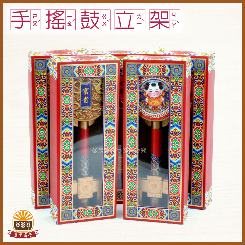 ★商品名稱: 三太子.中壇元帥.聖誕限定波浪鼓.兒童打擊樂器.懷舊雙面鼓/中國鼓-高級紙盒-5款
