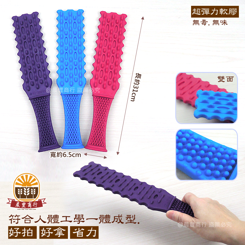 ★商品說明: 貼心的雙面凸點設計/專為身體各部位拍打按摩/柔軟矽膠質材/輕巧方便好攜帶/超省力彈力設計/拍打按摩力道適中