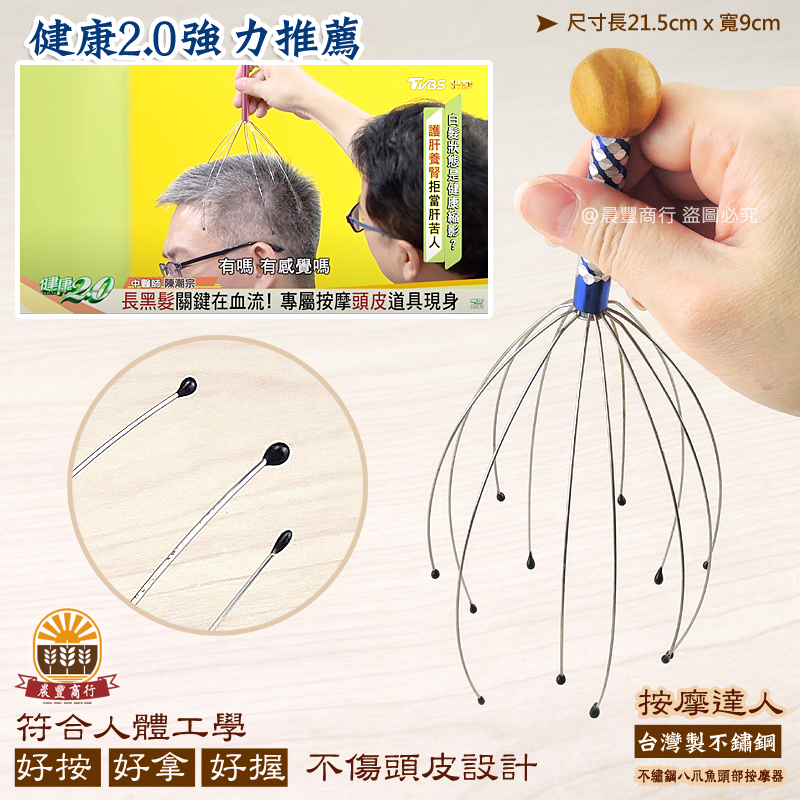 ★商品名稱: 【健康2.0強力推薦】不銹鋼八爪魚頭部按摩器 (歡迎團購) ★商品說明: 不銹鋼製 , 共有12個按摩點 ★規 格: 長21.5cm/寬9cm ★材 質: 全部銹鋼,圓木 ★顏 色: 多色 ★產 地: 台灣 ★售 價: 25元 深入髮內使頭部具有很強舒適感 適合常養護頭皮的你我隨時可用 擁有按摩觸角可按摩頭部穴道處 #瑜珈老師 #滾輪棒 #瑜珈棒 #算盤珠滾輪棒 #疏通經絡