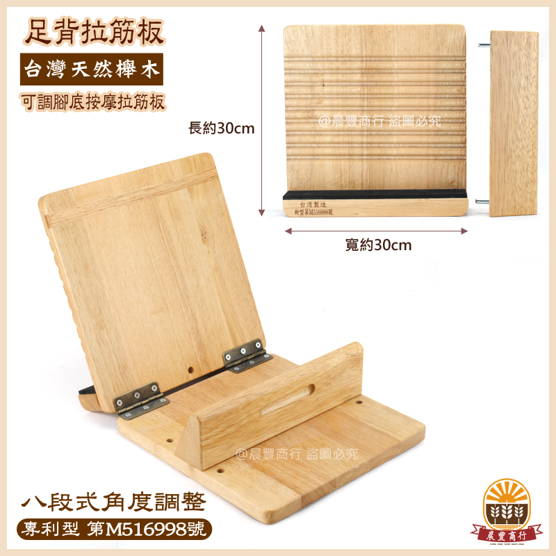 ★商品名稱: 可調腳底按摩拉筋板•專利編號M516998.易筋板拉筋板~足筋板八段角度調整