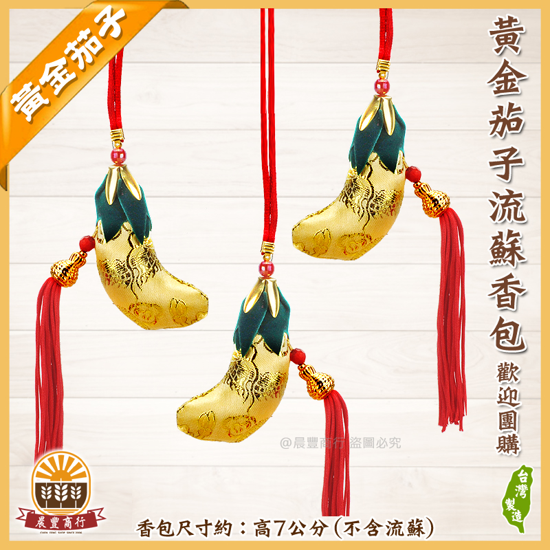 ★商品名稱: 黃金茄子流蘇香包(7cm) (歡迎學校.公司團購.另有優惠)-新上市