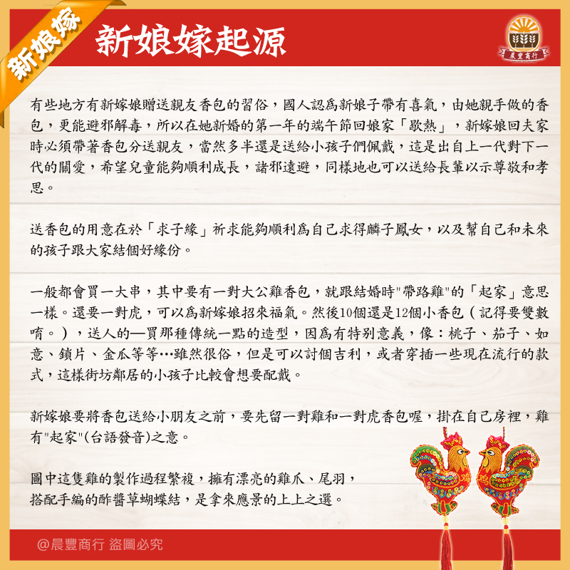 ★商品名稱: 傳統 (起家雞) 新嫁娘 分送香包 ~12組香包一套