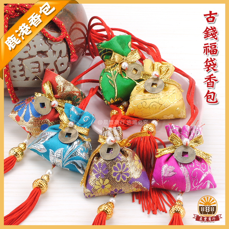 遵循古法純手如八卦、葫蘆有避邪之用,元寶是招財進寶,如果想要事業順利,就配戴小鞋香包,入厝就配戴公母雞,而香包裡的香料,也都改採高級的檀香,到了端午節就是鹿港香包的熱賣的季節了。