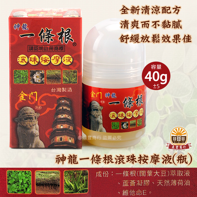 ★商品名稱: 一條根滾珠按摩液- 筋絡推拿及按摩的頂級聖品/金門一條根 按摩瓶(40g)