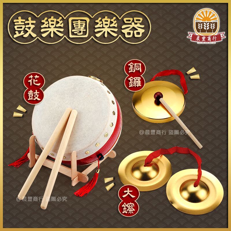 ★商品名稱: 台灣製.6吋半/真皮牛皮鼓/鳳陽花鼓【 附鼓棒2支】+銅鑼+大嚓