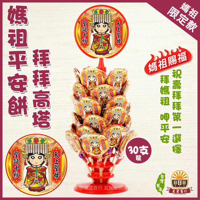 ★商品名稱: (媽祖平安餅)立牌精選糖果架/30入/媽祖最愛麥芽餅,步步高升高塔.拜拜首選 呷平安