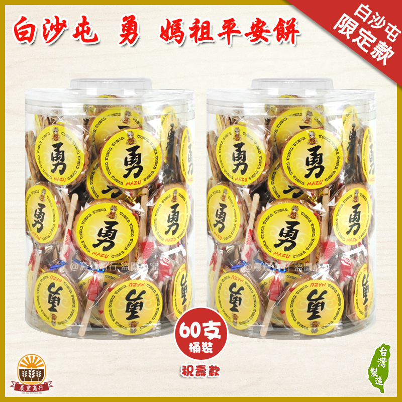 ★商品名稱: 古早味黑糖麥芽餅/媽祖麥芽餅/天上聖母聖誕千秋-白沙屯 勇字 媽祖麥芽餅60入桶裝/媽祖最愛麥芽餅