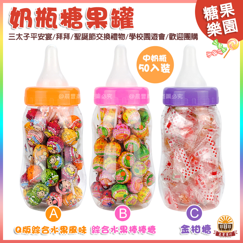 (B)品名: 綜合水果棒棒糖(50入裝)+中奶瓶組@190元