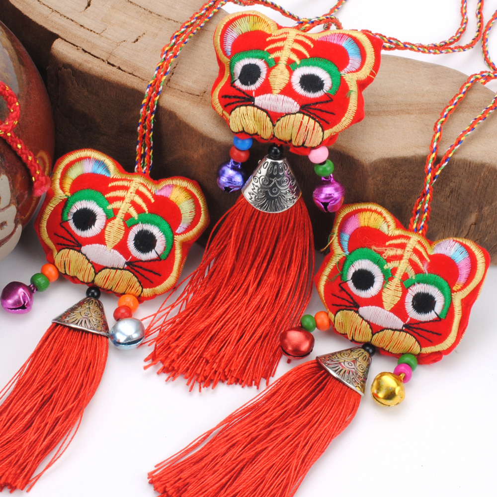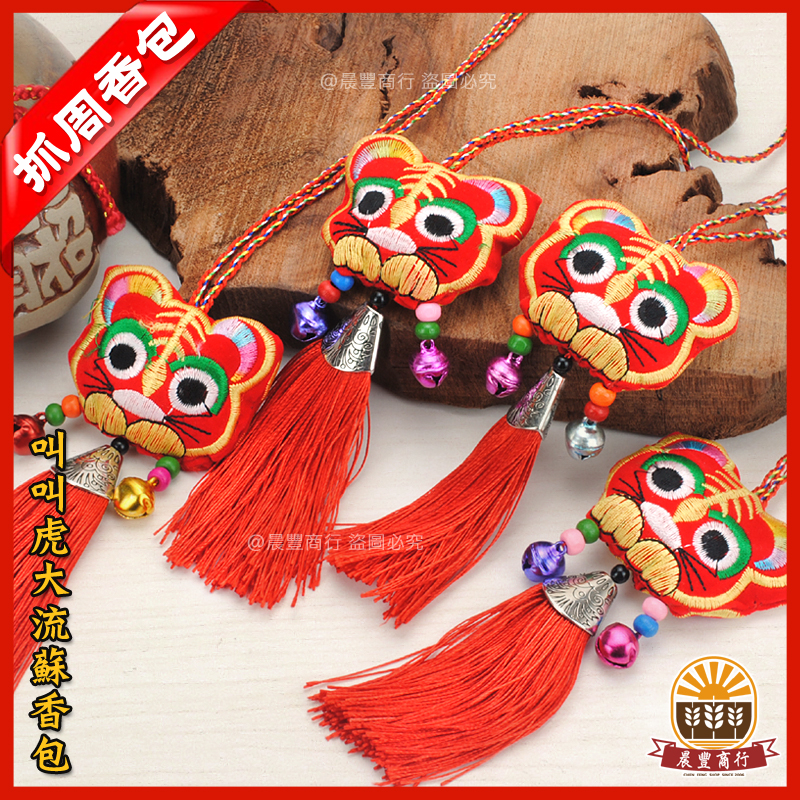★商品名稱: (抓周)叫叫虎大流蘇香包/兒童寶寶掛繩護身平安香包/端午節虎頭辟邪香包/手工刺繡端午節香虎頭平安鎖福包