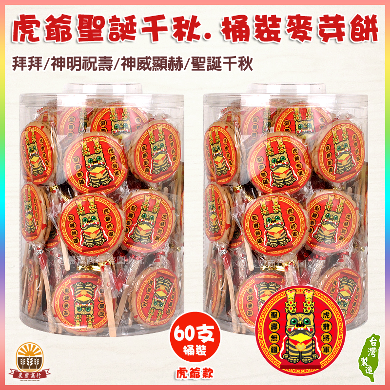 ★商品名稱: 古早味黑糖麥芽餅/虎爺麥芽餅/虎爺聖誕千秋-虎爺平安餅60入桶裝/虎爺最愛麥芽餅