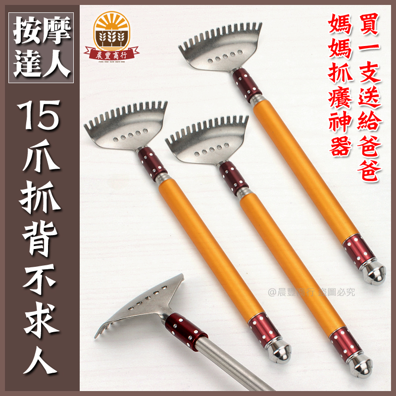 ★商品名稱: (方便攜帶式)不鏽鋼15爪抓背不求人伸縮棒.附工具組掏耳器.伸縮最長49cm ★商品說明: ★規 格: 共5節.最長49cm ★材 質: 不銹鋼 ★顏 色: 如圖 ★產 地: 台灣 ★售 價: 180元 #攜帶式#伸縮棒#不求人#抓癢#抓背神器#按摩達人#掏耳#父親節#母親節#送禮#禮物#
