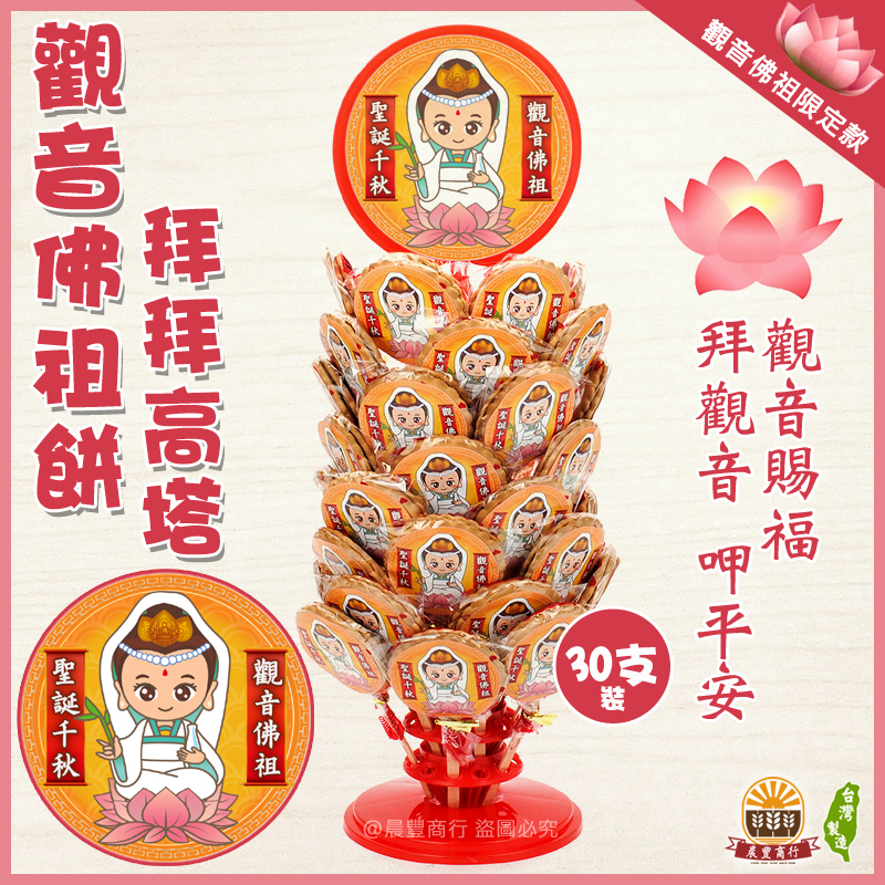 ★商品名稱: (觀音佛祖平安餅)立牌精選糖果架/30入/觀音佛祖最愛麥芽餅,步步高升高塔.拜拜首選 呷平安