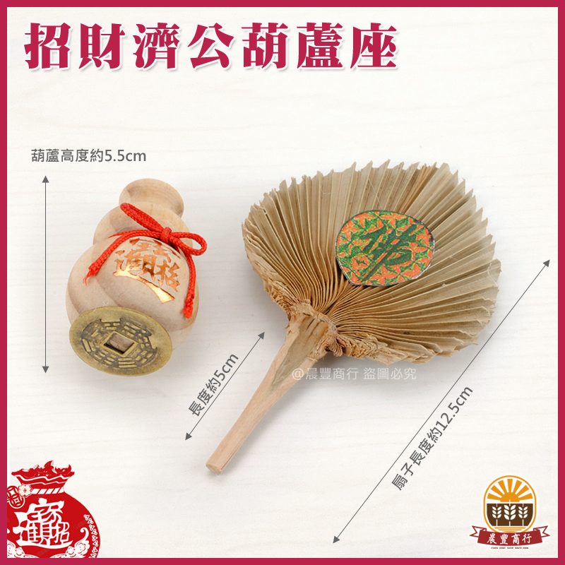★規 格: (招財進寶)松木葫蘆:寬約3.5cm,6cm,濟公扇子:長約11cm