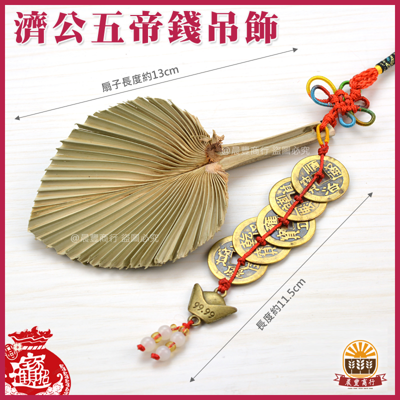 ★商品名稱: 濟公扇五帝錢吊飾/濟公師父乩身用濟公扇 植物扇 (棕櫚扇) 純手工/風水避煞/聚財招財