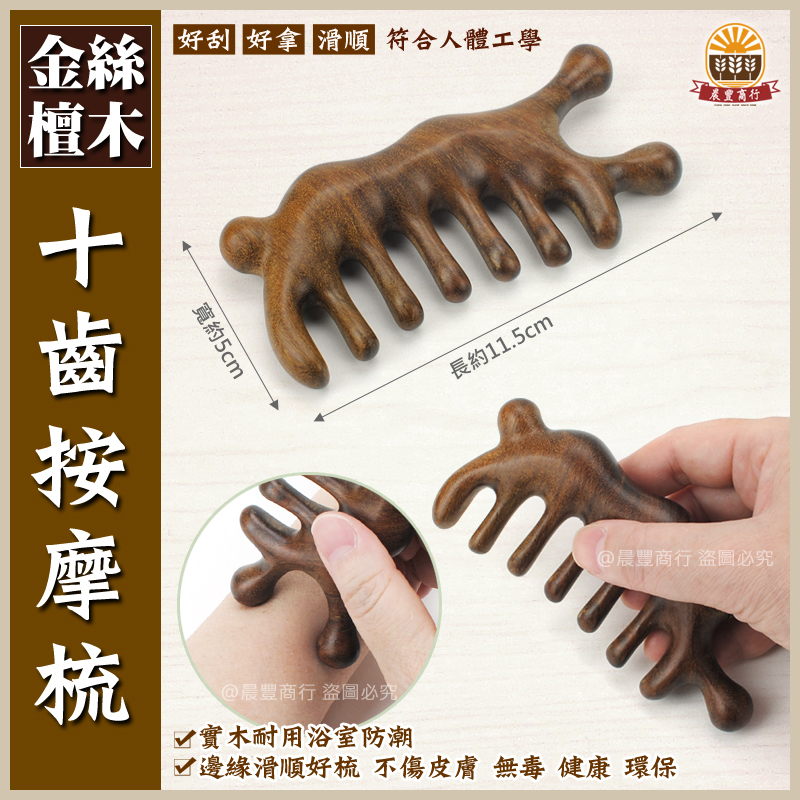 ★商品名稱: 十齒按摩梳.天然金絲檀木按摩梳.刮痧按摩養生梳.頭皮按摩.檀香木梳.原木梳.