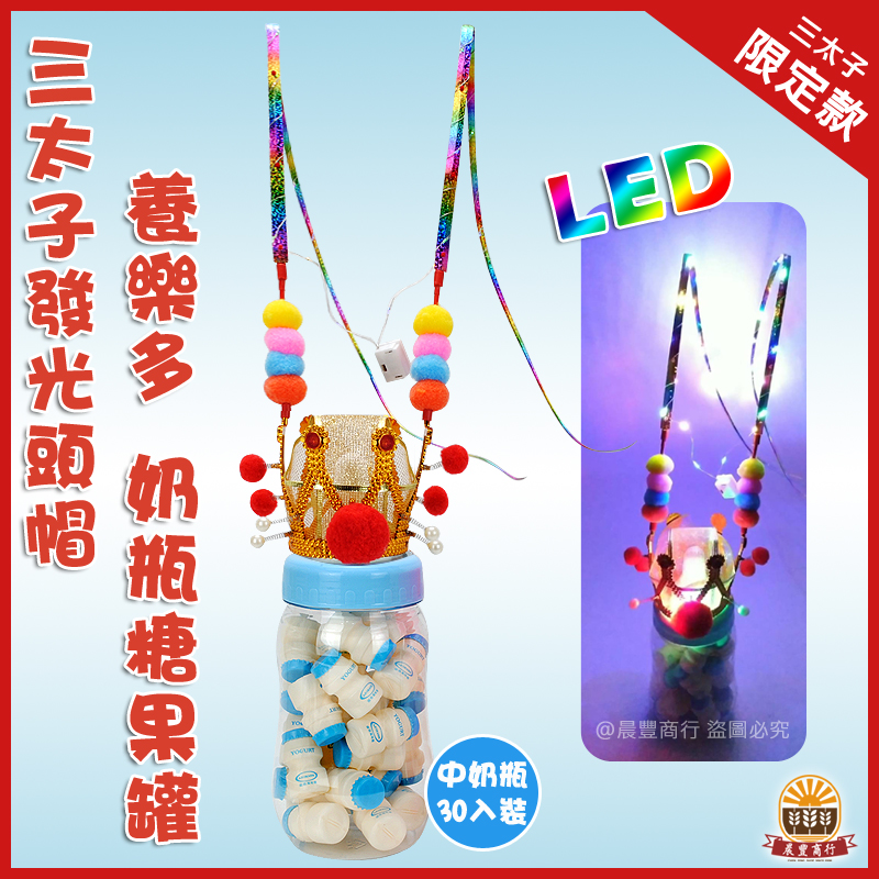 ★商品名稱: 中奶瓶糖果罐-三太子聖誕千秋/養樂多.官帽發光奶瓶裝/三太子最愛養樂多/太子生日秒殺供品/聖誕節交換禮