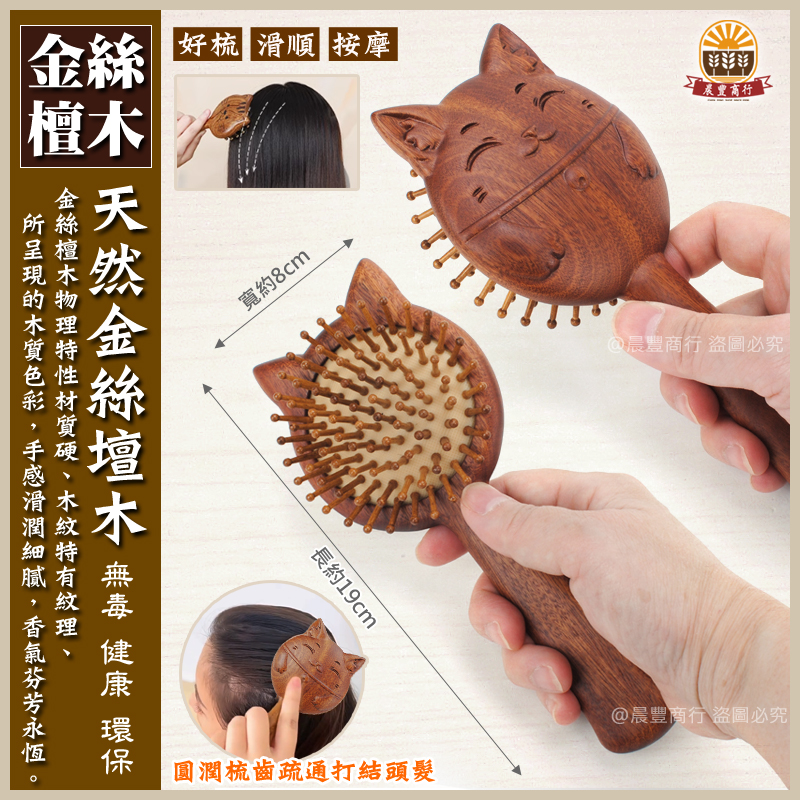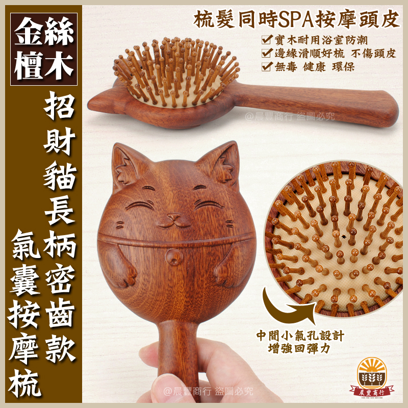 ★商品名稱: 天然金絲檀木-招財貓長柄密齒氣囊按摩梳 .按摩梳 刮痧按摩養生梳 頭皮按摩 金絲檀木 原木梳 禮物