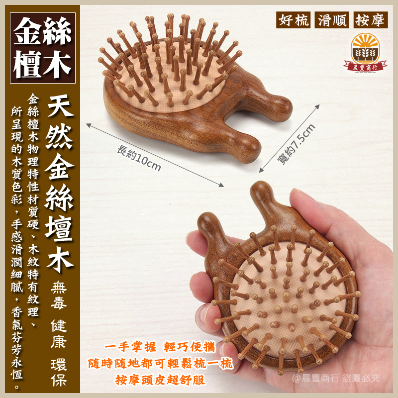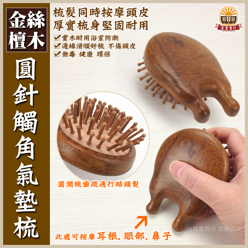 ★商品名稱: 天然金絲檀木按摩梳造型梳 - 圓針觸角氣墊梳-刮痧按摩養生梳 頭皮按摩 檀香木梳 原木梳 禮物