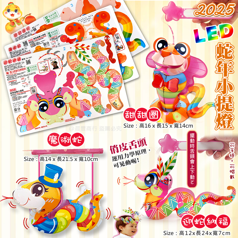 【2025 蛇年燈會燈籠 】DIY親子燈籠-「迎蛇納福」「魔術蛇」 「甜甜圈」 LED 蛇年小提燈/紙燈籠/彩繪燈籠