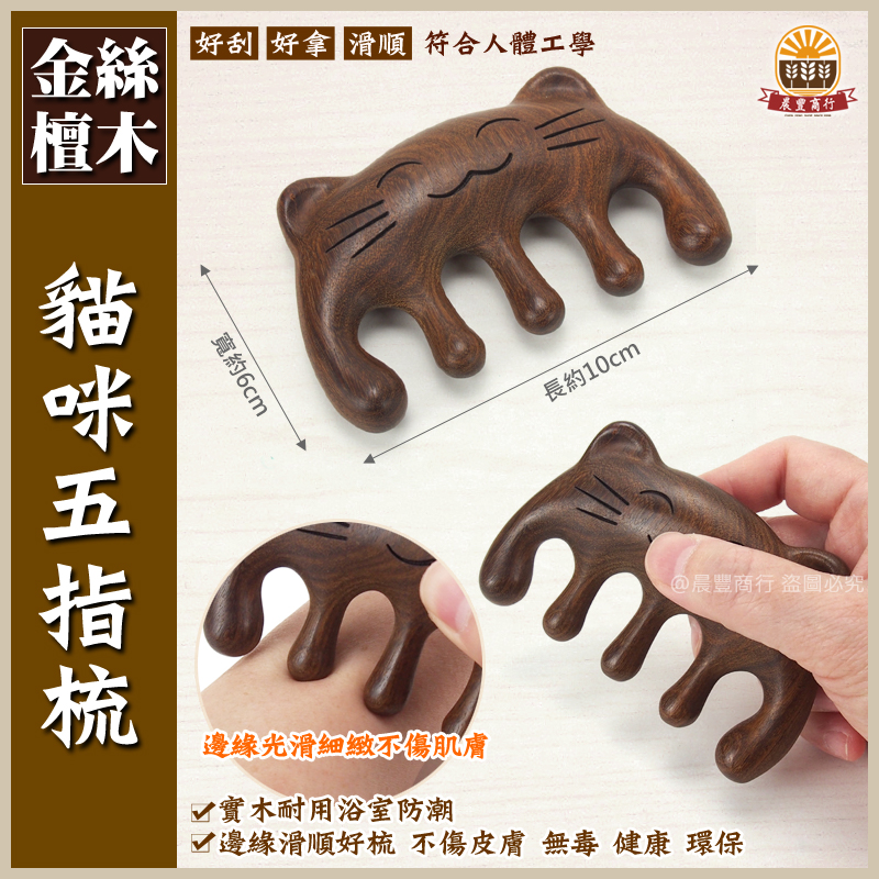 ★商品名稱: 貓咪五指梳五指梳.天然金絲檀木按摩梳.刮痧按摩養生梳.頭皮按摩.檀香木梳.原木梳.