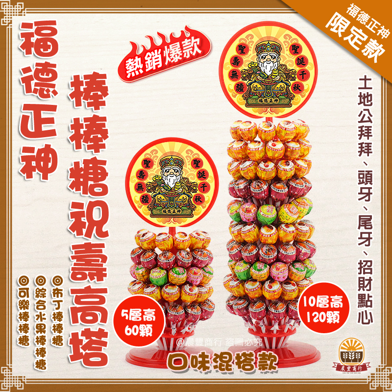 ★商品名稱: (福德正神)立牌精選糖果架(60入/120入)土地公最愛/棒棒糖步步高升高塔/拜拜首選/呷平安/補財庫/棒棒糖口味混搭款