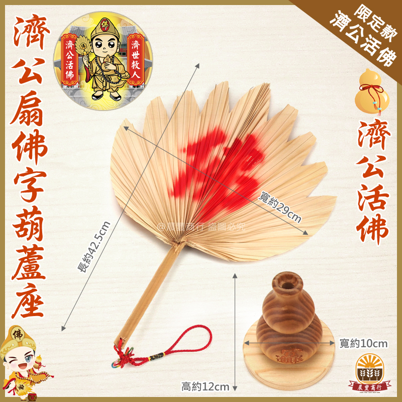 ★商品名稱: 招財濟公噴佛扇葫蘆座/濟公師父乩身用濟公扇 植物扇 (棕櫚扇) 純手工 /招財聚財