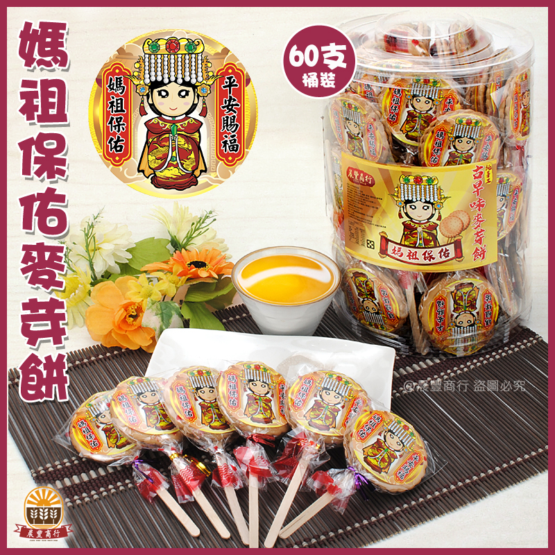 ★商品名稱: 媽祖保佑麥芽餅桶裝/古早味麥芽餅/媽祖麥芽餅/媽祖平安餅60入桶裝/媽祖最愛麥芽餅