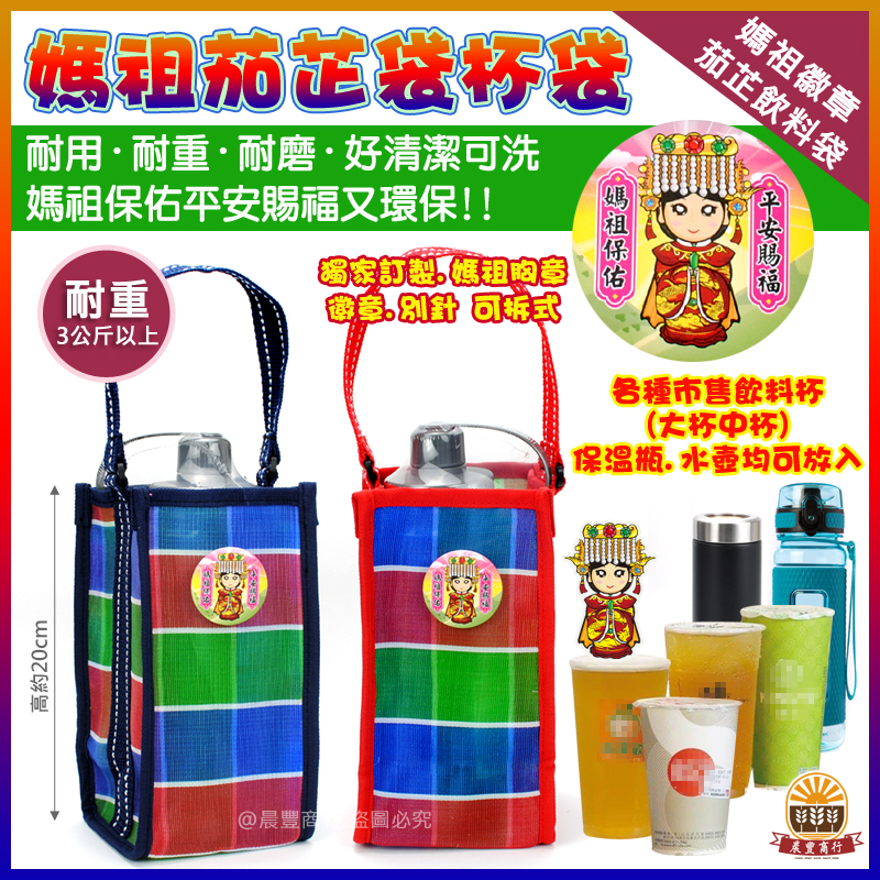 ★商品名稱: 媽祖保佑茄芷環保袋/媽祖繞進飲料袋/台灣製飲料袋/茄芷袋/環保杯袋/飲料提袋/水壺袋子