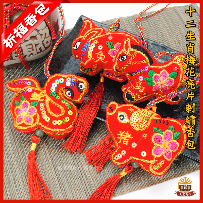 ★商品名稱: 端午節 十二生肖亮片梅花香包 香包 立體生肖 香囊端陽寶寶 禮物
