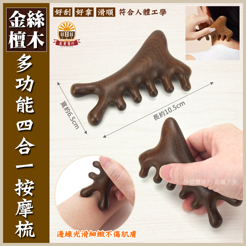 ★商品名稱: 多功能四合一金絲檀木按摩梳 養生按摩梳 按摩梳子 頭皮按摩 臉部按摩 穴位按摩 經絡梳 按摩器