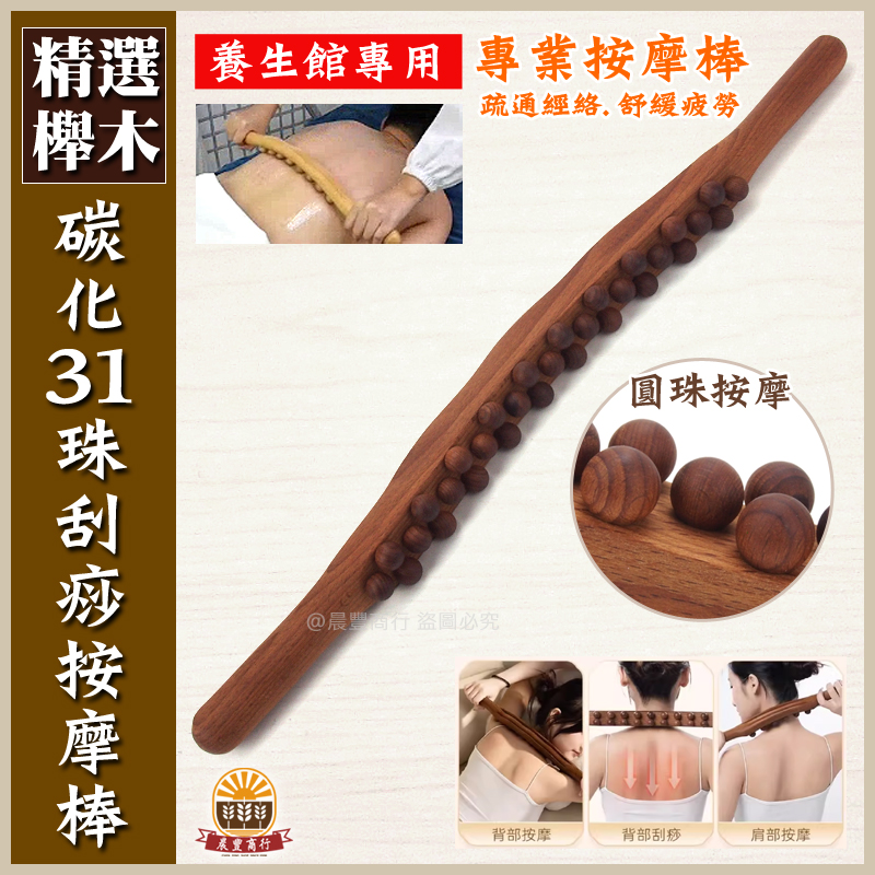 ★商品名稱: 刮痧按摩擀筋棒 刮痧神器 全身通用 天然櫸木碳化31珠擀筋棒 圓點指壓按摩 按摩棒 刮痧棍 刮痧棒 按摩器
