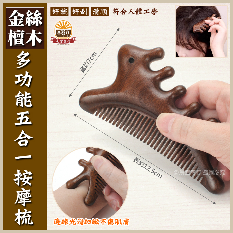 ★商品名稱: 多功能五合一金絲檀木按摩梳 養生按摩梳 按摩梳子 頭皮按摩 臉部按摩 穴位按摩 經絡梳 按摩器