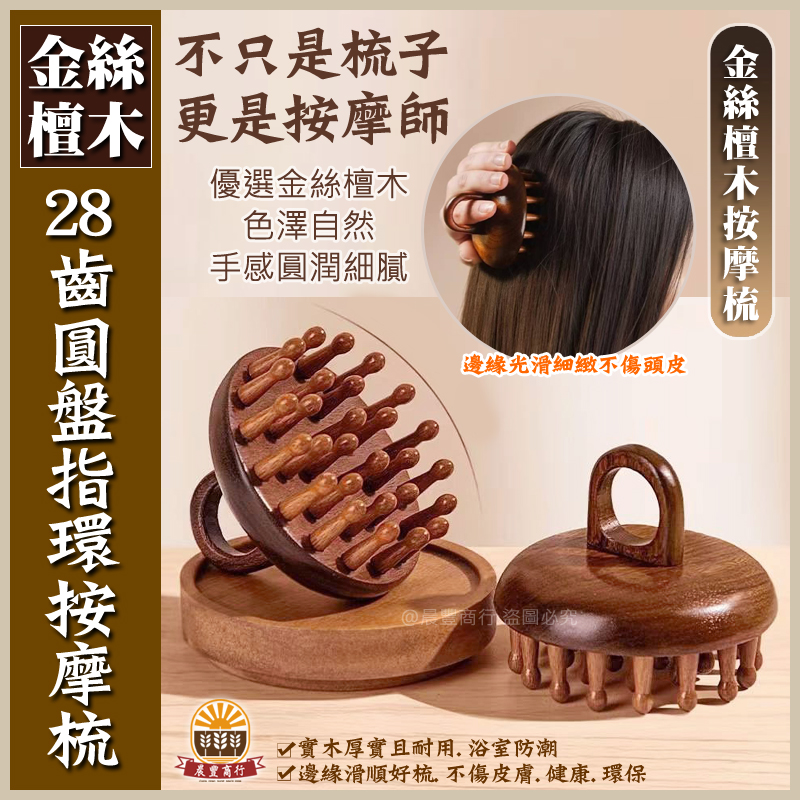 ★商品名稱: 天然金絲檀木 手持(28齒圓盤指環按摩梳) 梳子 刮痧按摩養生梳 頭皮按摩 檀香木梳 原木梳 禮物