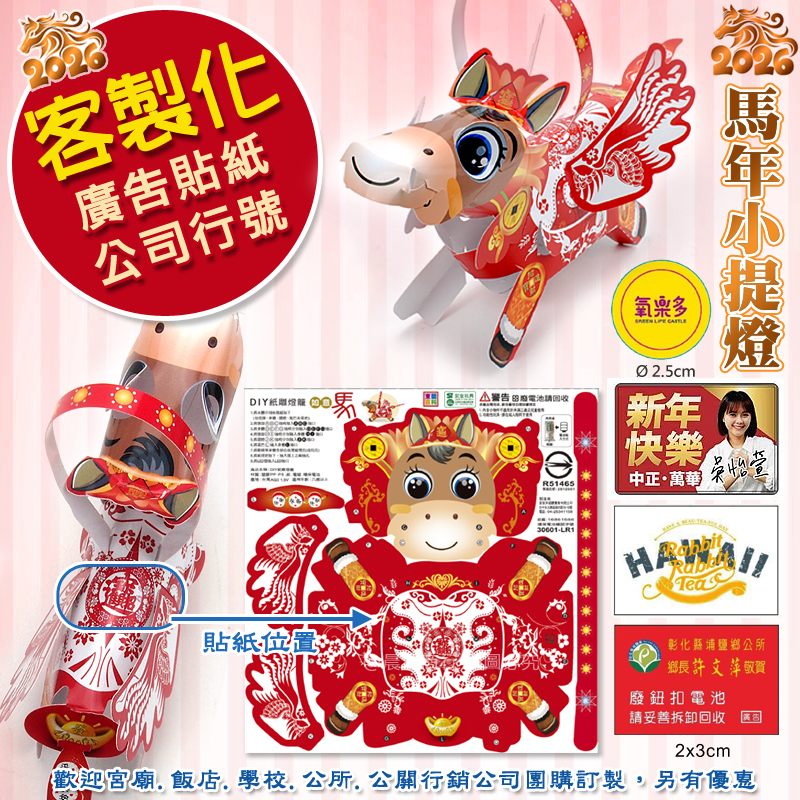 【2026 台灣燈會燈籠】DIY親子燈籠(如意馬)(吉祥馬)(福氣馬)馬年小提燈/紙燈籠(大/小)