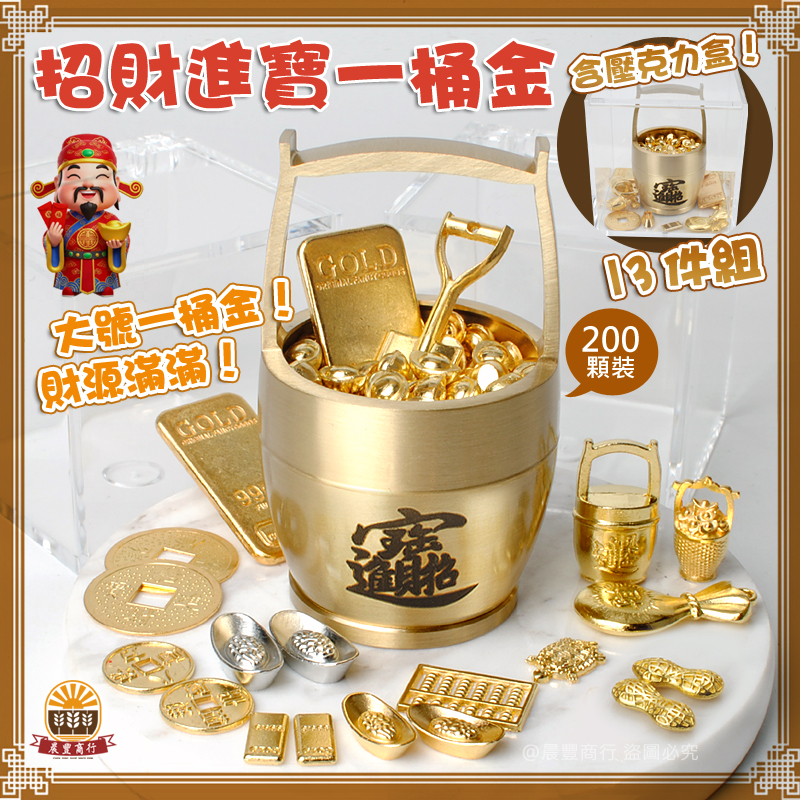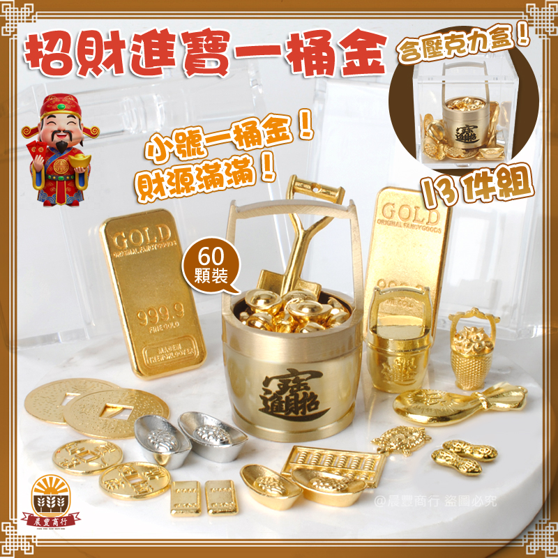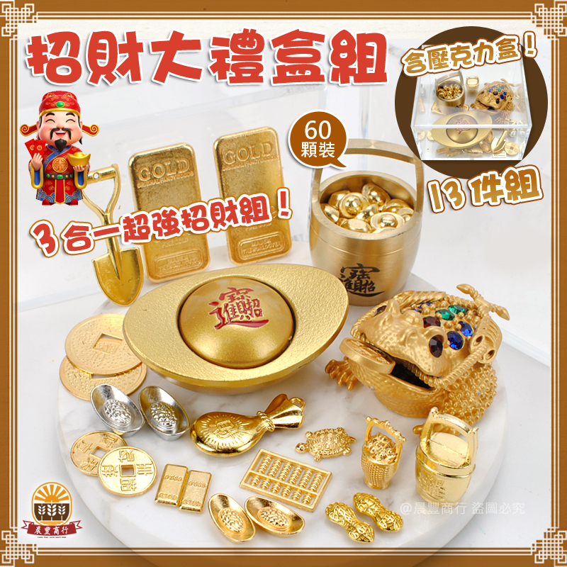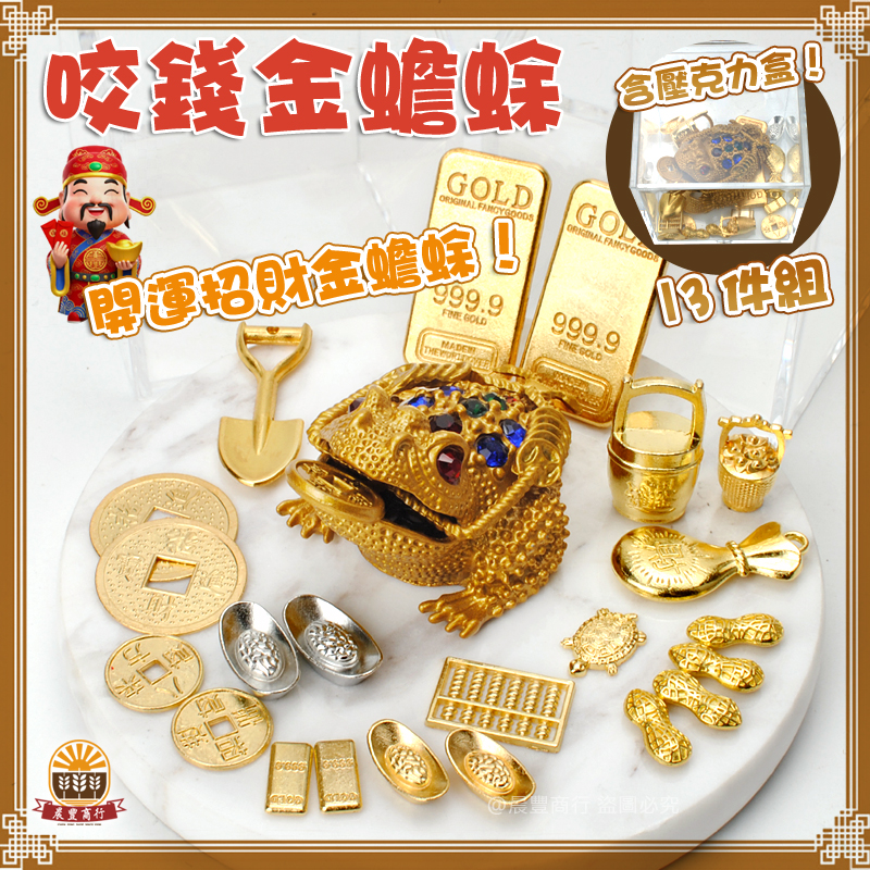 內容: 金蟾蜍+小桶金+60顆金元寶+轉轉元寶+13件配件+壓克力盒
