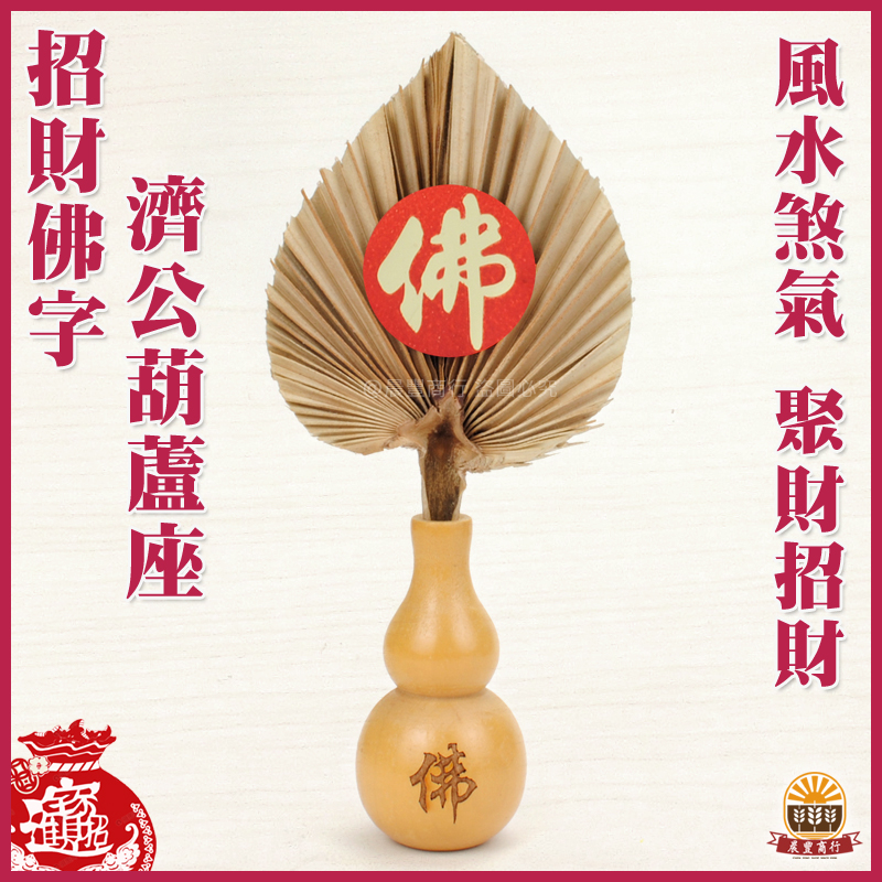 ★商品名稱: 濟公師父乩身用濟公扇 植物扇 (棕櫚扇) 純手工/濟公扇+佛字禾木葫蘆座/招財平安