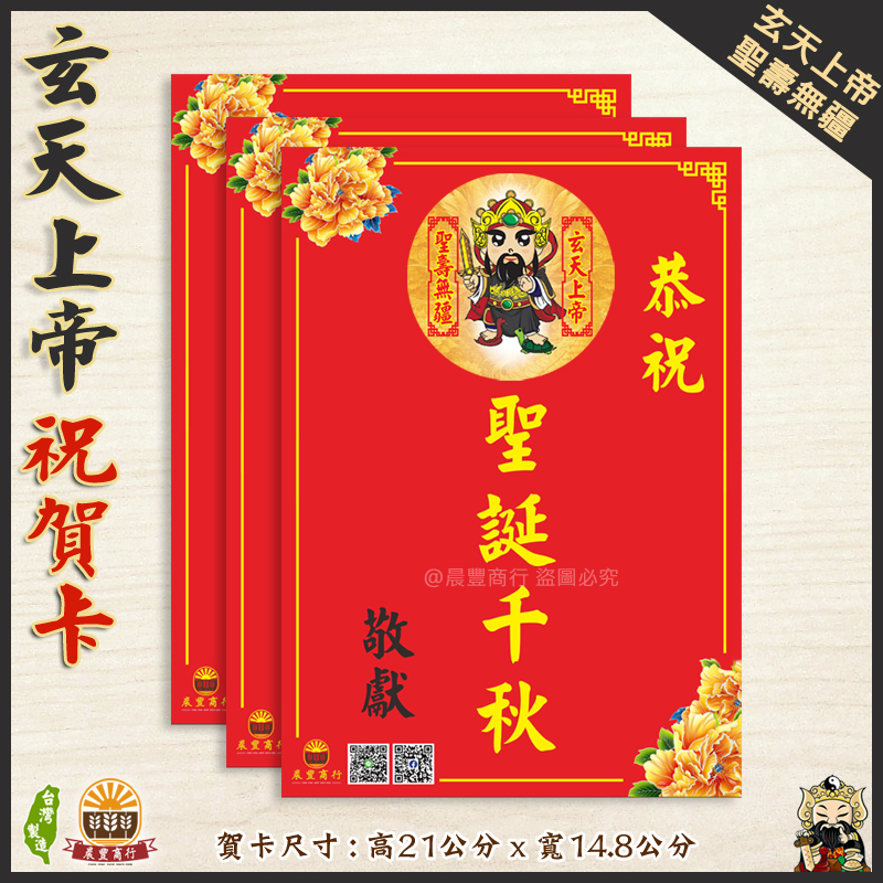 ★商品名稱: 獨家客製化/玄天上帝祝賀謝卡/廟會卡/感謝卡/祝賀卡
